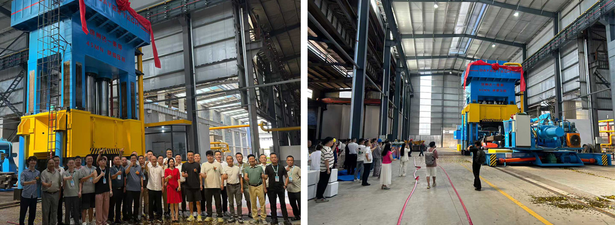 浙江奕鼎新材4500噸重型數(shù)字化快鍛液壓機(jī)開機(jī)大吉