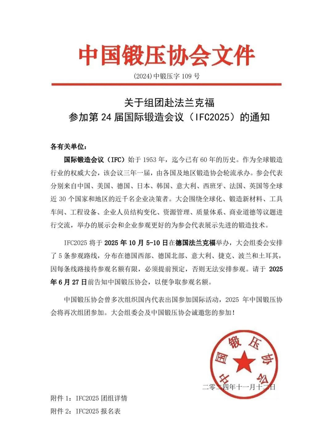 我司憑借在精密鍛造領(lǐng)域的技術(shù)積累和市場表現(xiàn),獲得中國鍛壓協(xié)會的正式邀請,成為本次中國代表團(tuán)的重要成員之一。這既是對我司實(shí)力的認(rèn)可,也是展示中國鍛造水平的寶貴機(jī)會。